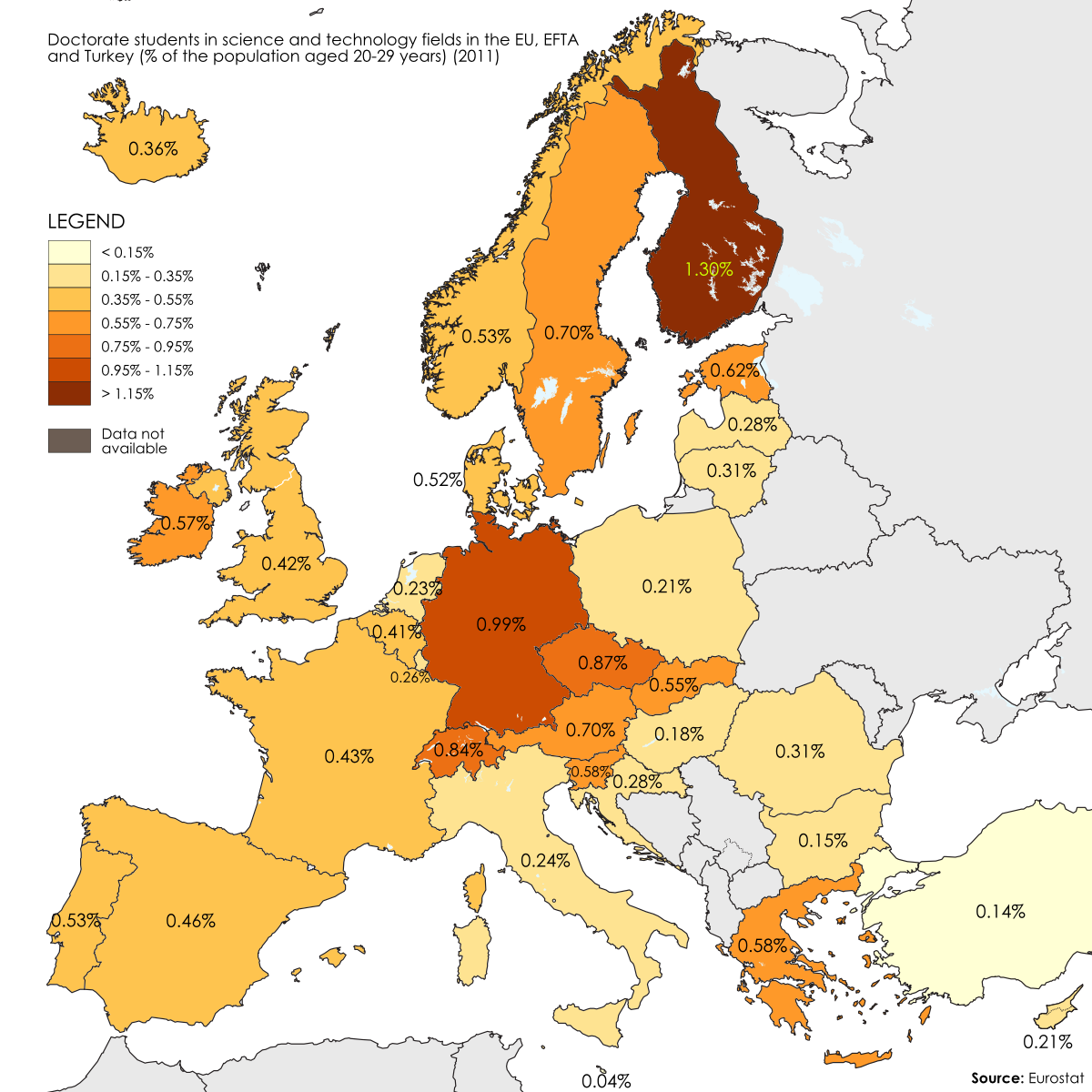 Doctorate students in science and technology fields in the EU.