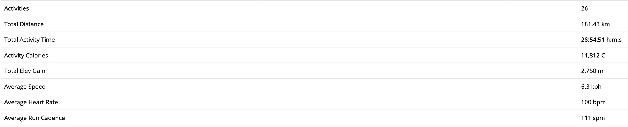 In January I did a total of 56 tracked activities and covered a distance of 338.69km according to my Garmin.