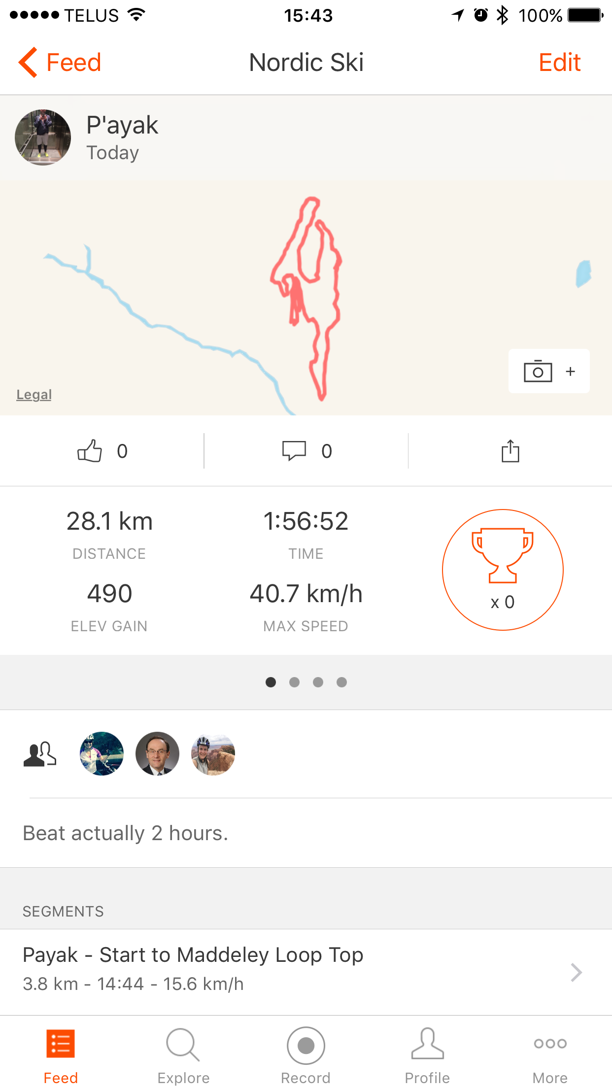 - My downhill needs improving. Other people who tracked themselves in Strava showed a top speed of 47kph, I managed 40.5kph. It’s not the end of the world, but I have the suspicion that they were also faster in turns as this comes down to ski control and confidence as well.